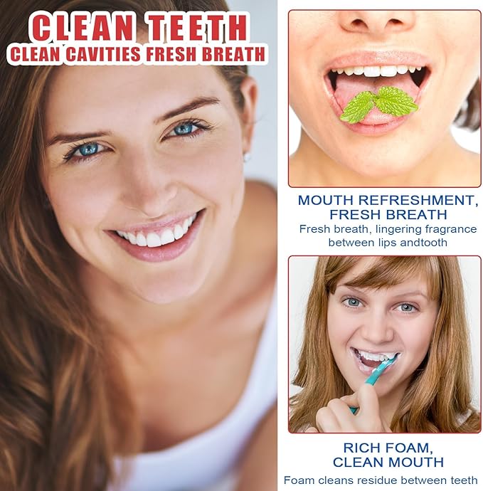 Enjoy all-day fresh breath that enhances your mood and confidence. Our toothpaste ensures continuous freshness, allowing you to confidently embrace the day with a bright and fresh smile